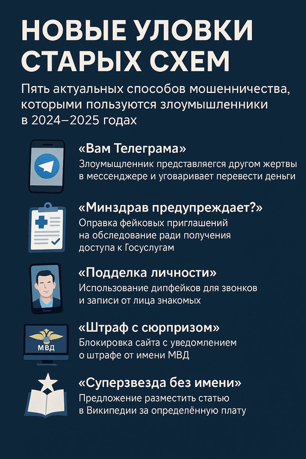 Мошенники не дремлют. Они адаптируются к технологиям, экспериментируют с новыми подходами и активно обновляют старые схемы. Всё это — ради одной цели: получить доступ к вашим деньгам. В этом материале собраны пять наиболее распространённых уловок последних месяцев, с помощью которых злоумышленники пытаются обмануть доверчивых граждан.